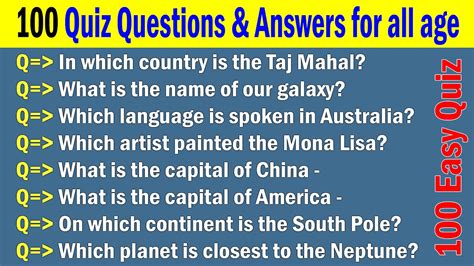 These questions give you a chance. These easy quiz questions and answers contain 100 general knowledge questions.
