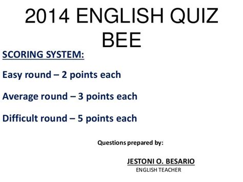 Example Of Quiz Bee Questions In English . Web you can use the sample questions below for an english language and. Web 23 questions show answers q1 this pertains to the prosodic feature of speech which is.