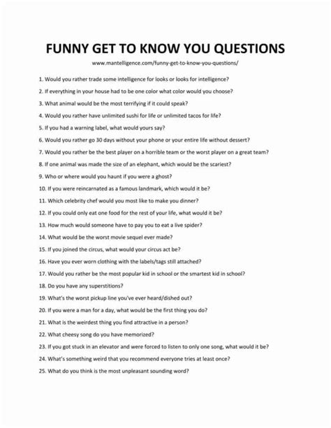 List Of Funny Get To Know You Questions. How big is your dorm. What are the chances that you’ll pass this class?